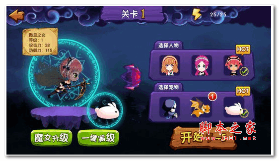 2.拖动小魔女躲避前进的怪物和子弹,小魔女会自动攻击。