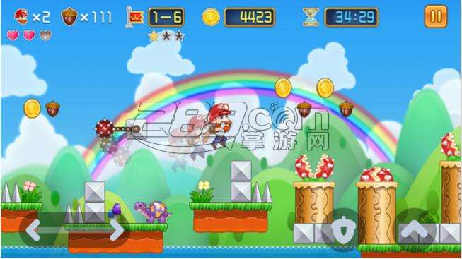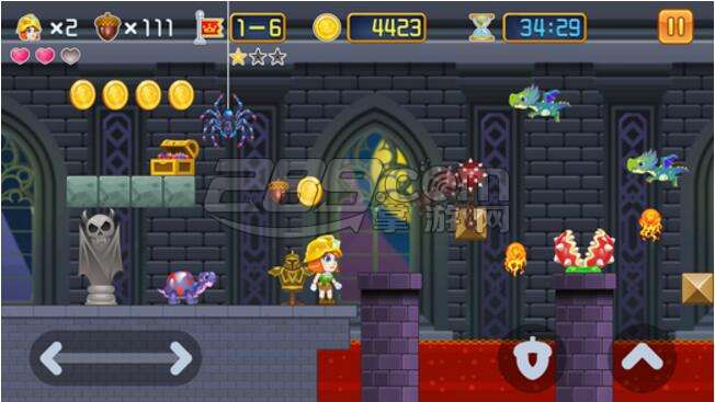 游戏操作非常简单,游戏采用虚拟键操作,右边的前后箭头控制前进和后退,右边的向上箭头是控制跳跃,而火球按键是发射火球的,游戏基本操作也和超级玛丽类似,喜欢这类游戏的玩家不妨下载感受一下吧。